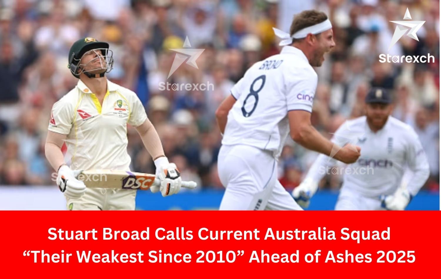 Stuart Broad comments on Australia’s weakest squad since 2010 ahead of Ashes 2025, highlighting concerns about their form.